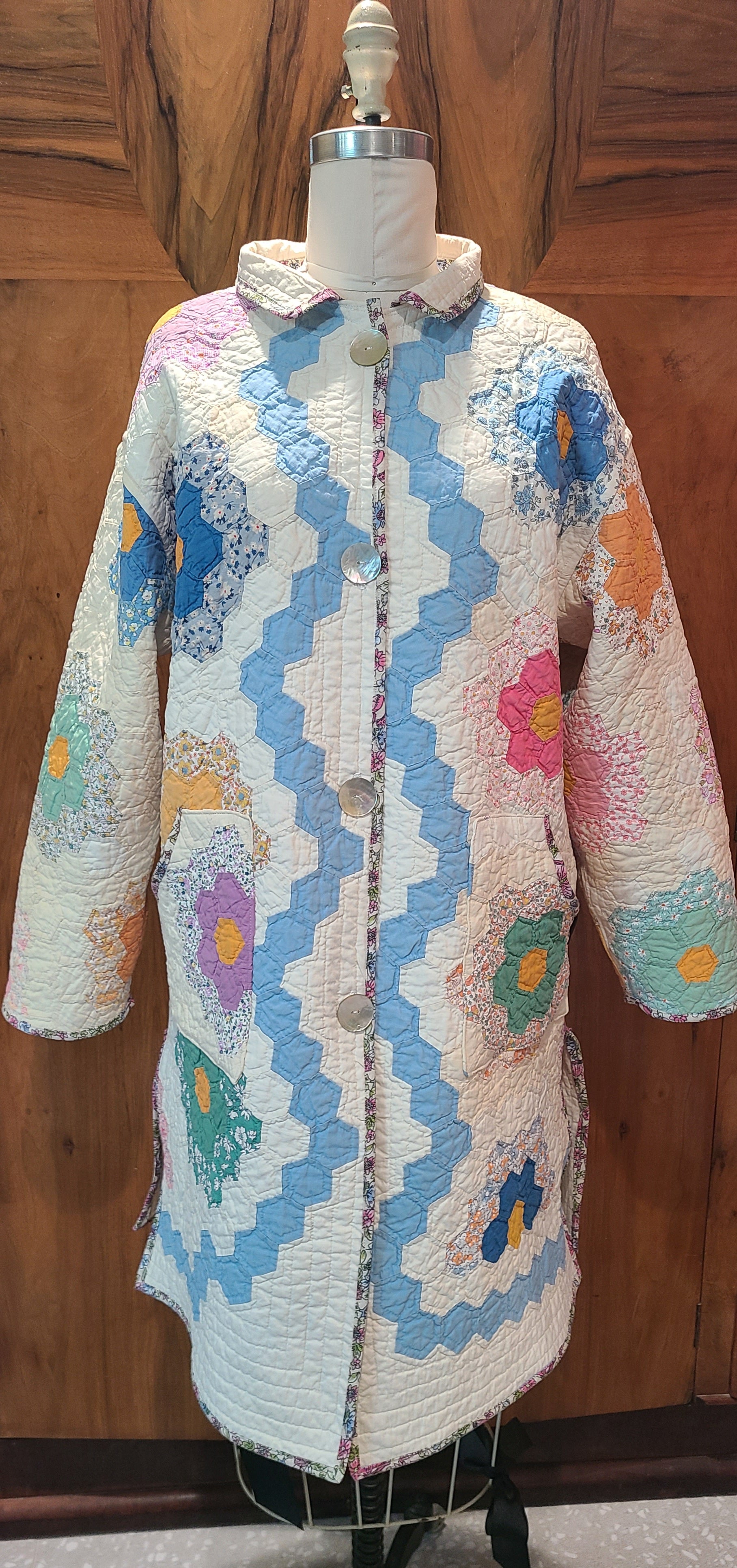 This lightweight Grandma's Garden Duster is versatile and suitable for any season. It features iridescent button closures, front pockets, and butterfly trim for a polished finish.