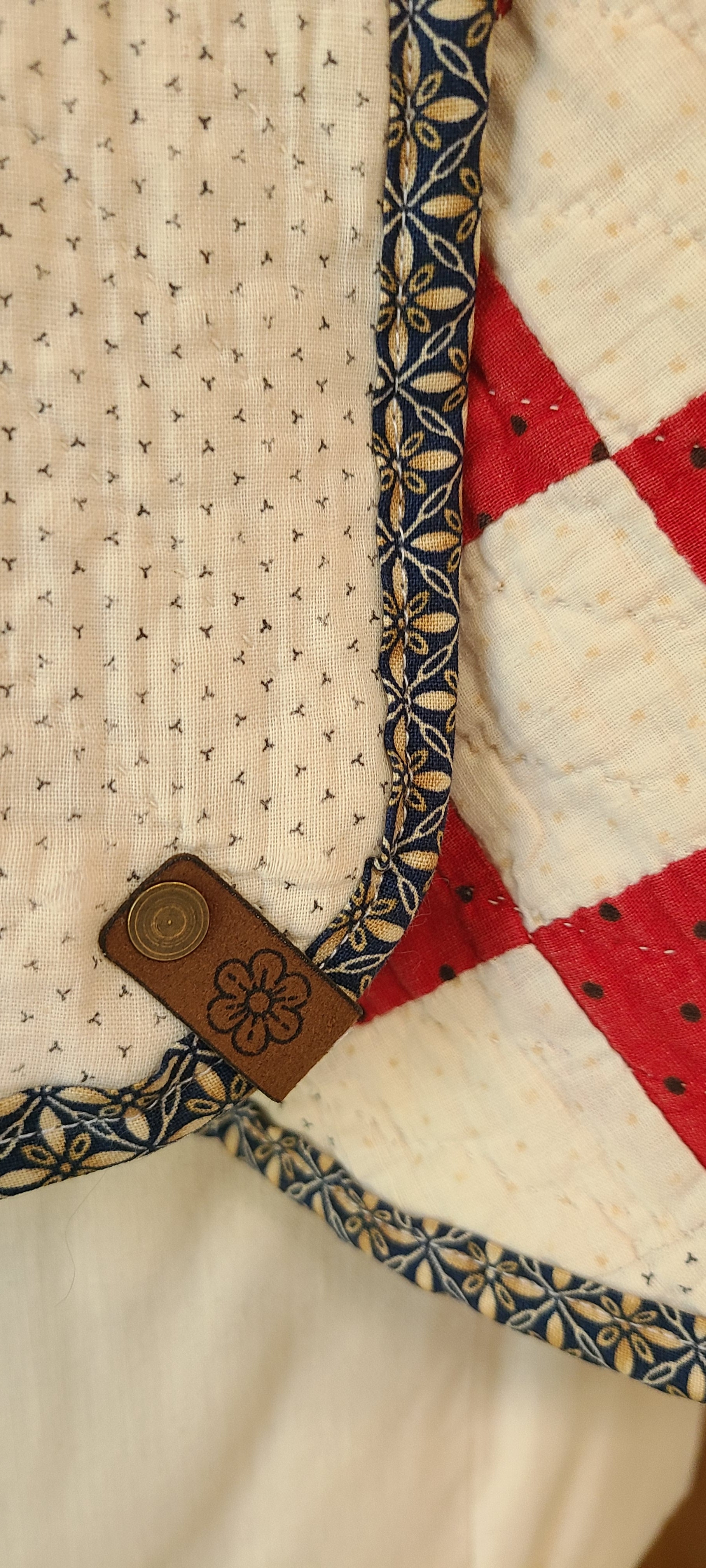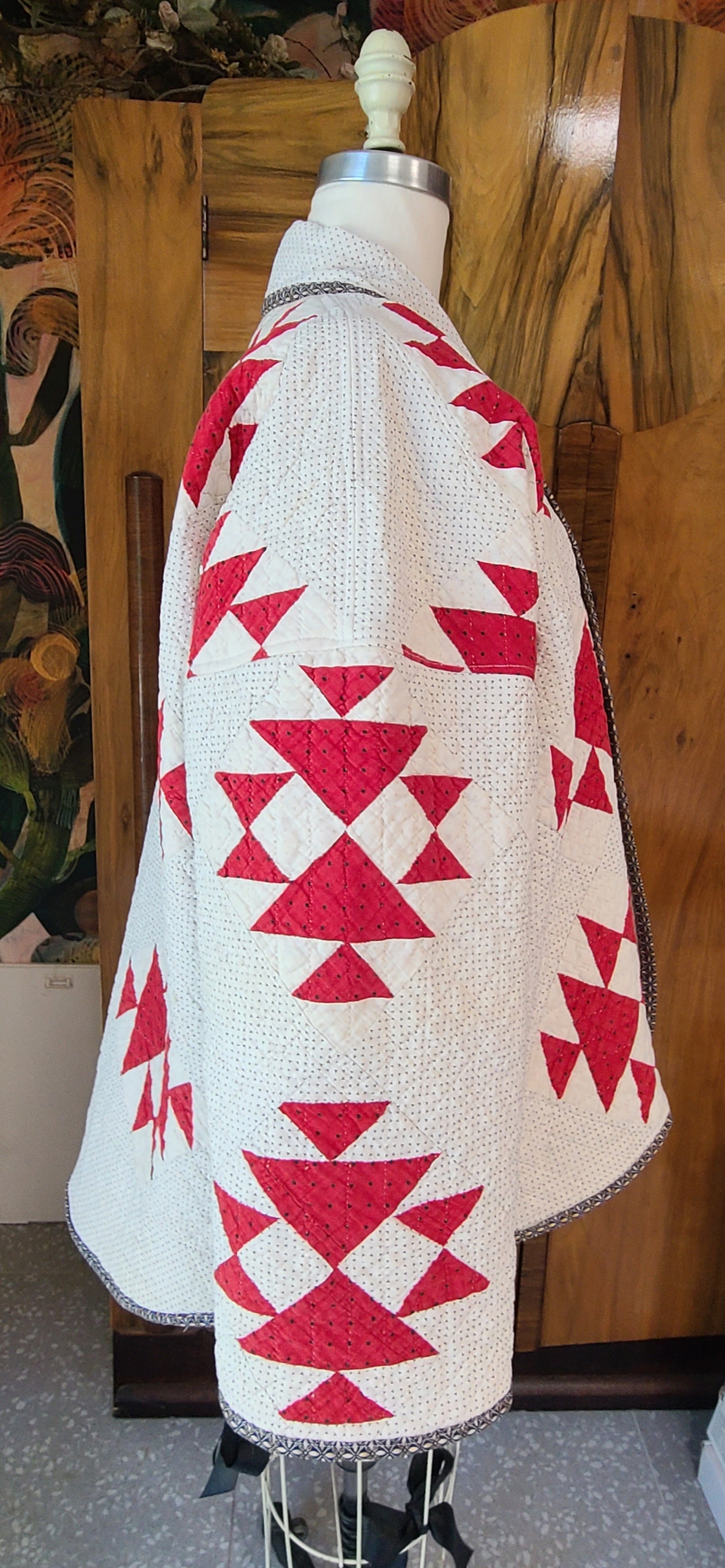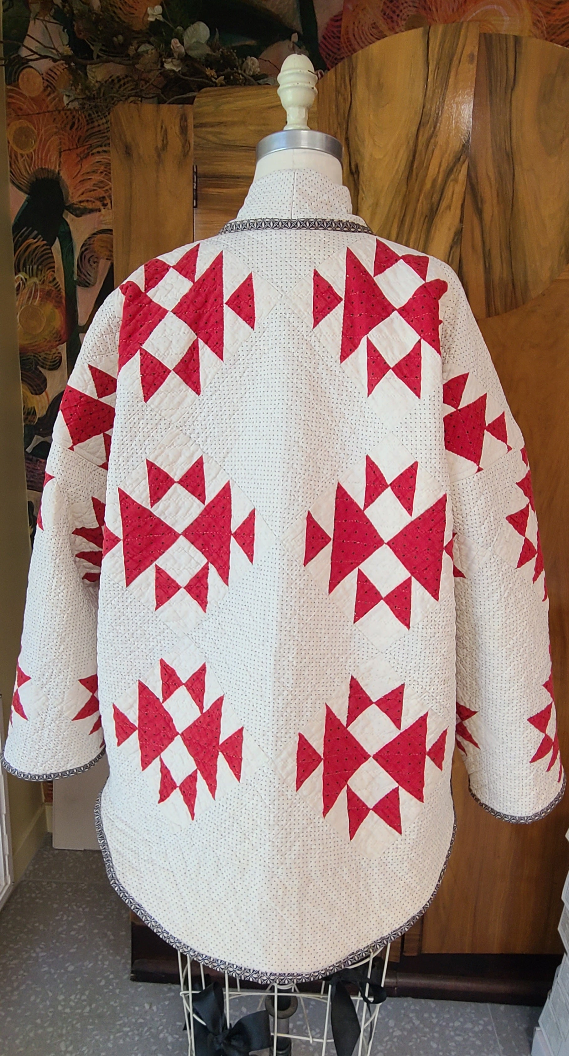 Beautiful vintage all hand stitched, red, white, and black quilt coat. Made in my Harper style.