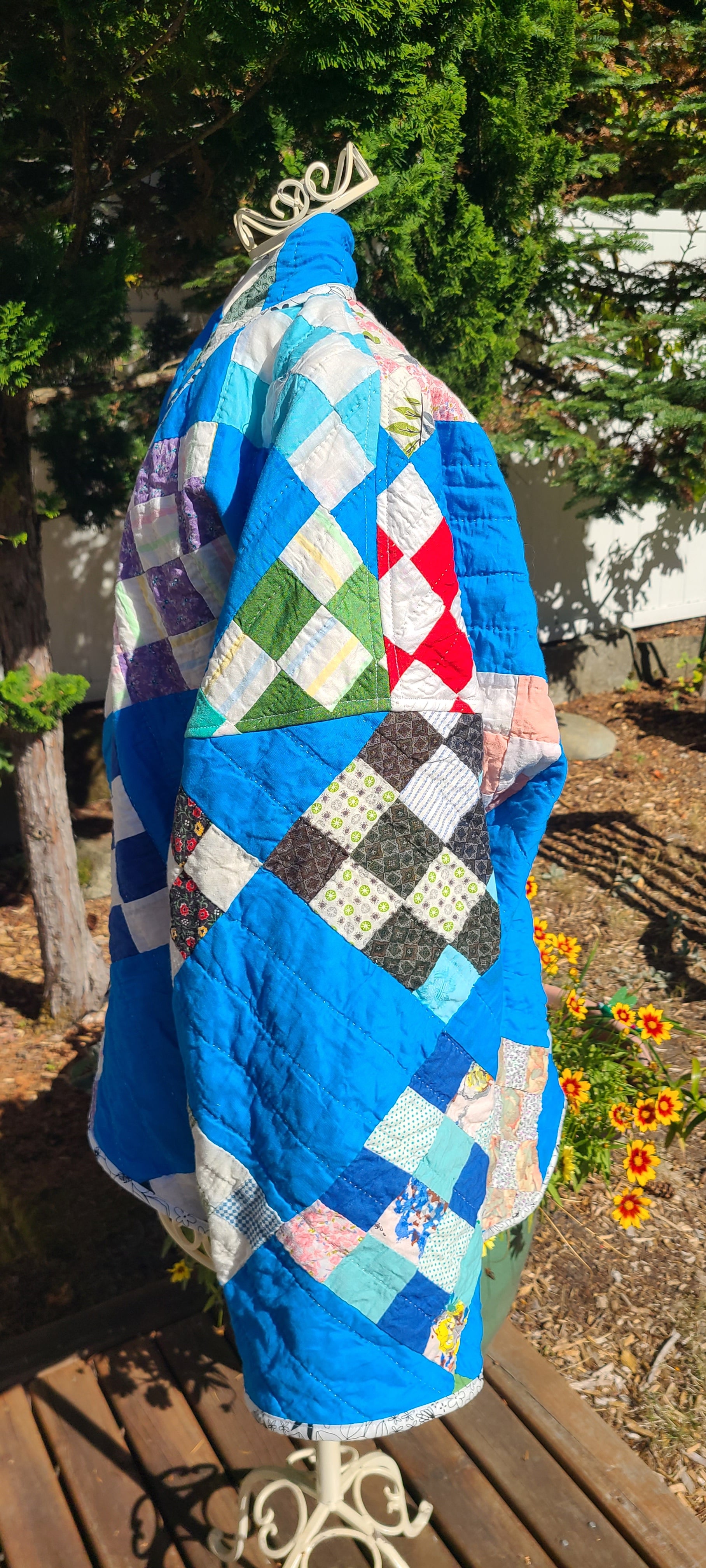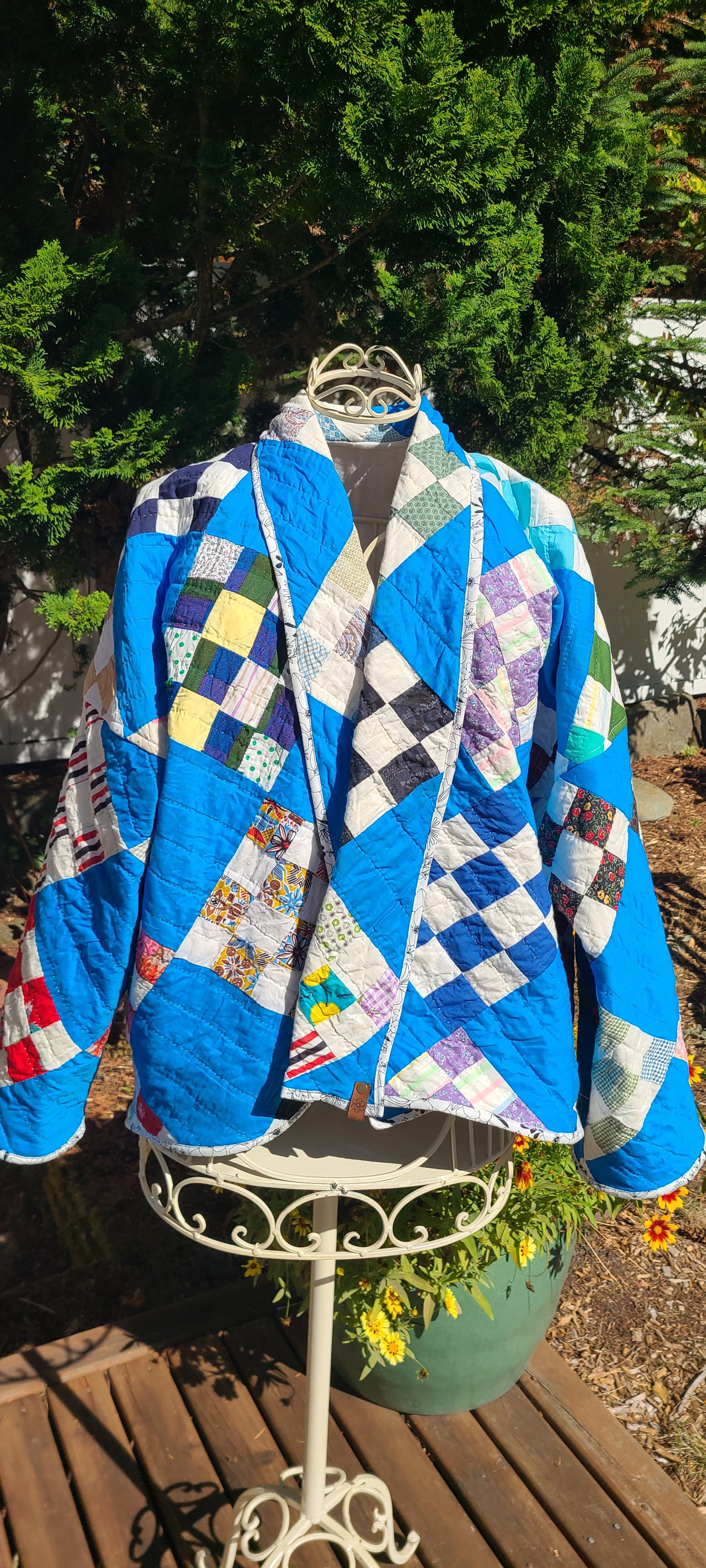 The Blue Patch Harper jacket boasts a vintage design, with black and white trimming and a roomy, one-size fit.